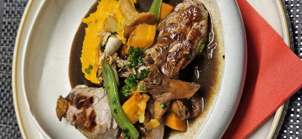 Cet automne, La Cantine met Ă lâhonneur un plat plein de caractĂšre : le filet de faisan aux girolles, accompagnĂ© dâune purĂ©e de potimarron onctueuse et de petits lĂ©gumes de saison. Une assiette raffinĂ©e, aux saveurs authentiques, prĂ©parĂ©e maison avec des produits frais issus de nos producteurs locaux đ