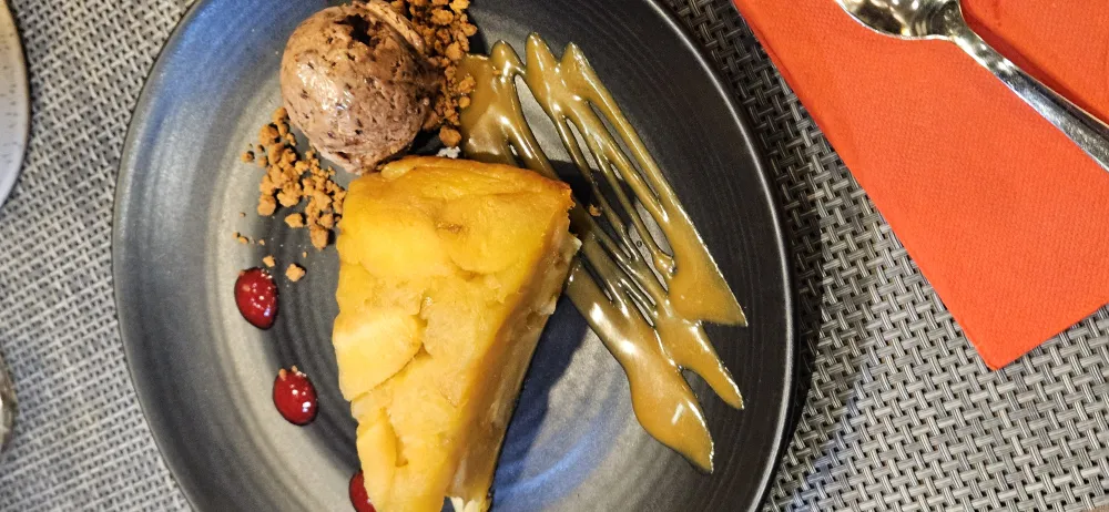 🍏 Nouvelle douceur du moment : Notre Tarte Tatin maison & glace Benco praliné !