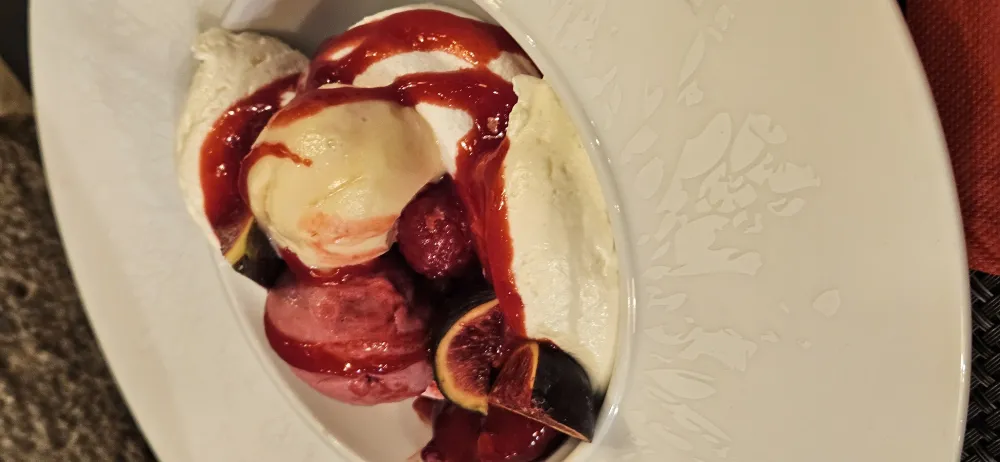 Sous sa meringue croustillante se cache un nuage de douceur, sublimé par une glace artisanale, un coulis de fruits rouges maison et quelques figues fraßches pour la touche gourmande.