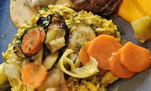 🔥 Plat du jour qui envoie du lourd !Aujourd’hui, on vous régale avec un steak d’agneau fondant, nappé d’une sauce aux champignons 🍄, accompagné de lég...